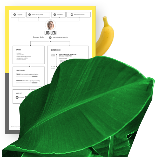 Unsere Preisliste umfasst einige Möglichkeiten. Der CV-Maker ermöglicht kostenloses Erstellen von CVs und Bewerbungsschreiben, aber wenn Sie das Dokument als PDF-Datei oder JPG ohne Wasserzeichen herunterladen möchten, müssen Sie das Paket Small Banana oder Big Banana wählen. Außerdem bekommen Sie die Möglichkeit, ein mehrseitiges CV zu erstellen oder eigene Farbvariante zu wählen. Das Paket Big Banana ermöglicht Ihnen, zwei unabhängige Identitäten mit einer anderen Person oder einem Bekannten zu kreieren.